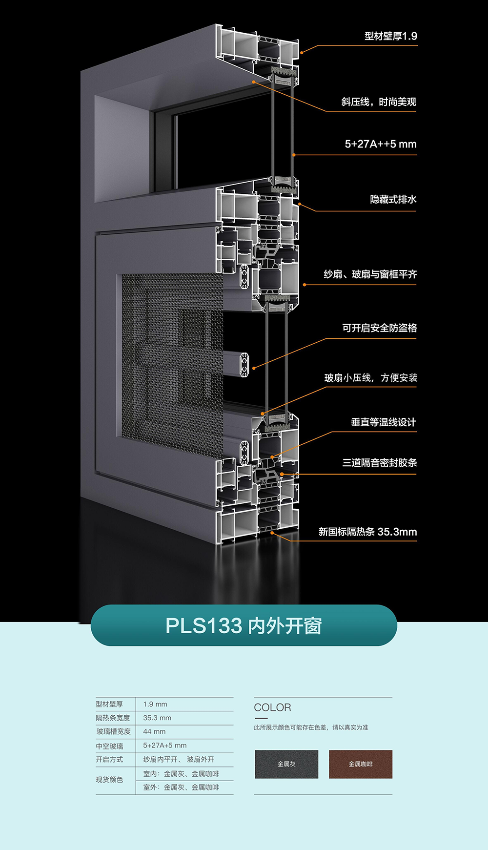 6.框扇内外齐平,美观大气,安装更方便,使产品在空间的展示更加完美。